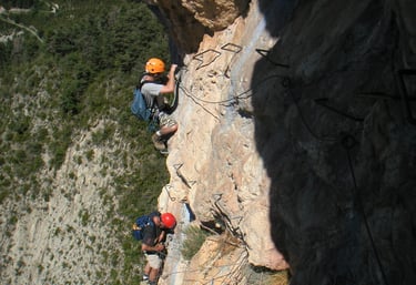 Les activités : Escalade en falaise • Grandes voies • Via cordata & parcours aventure • Via ferrata