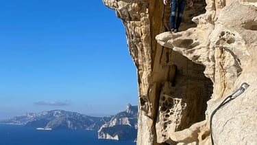 « Trois types de roches dans une seule voie, la mer sous les pieds, le silence au-dessus. C’est Cap Canaille. »